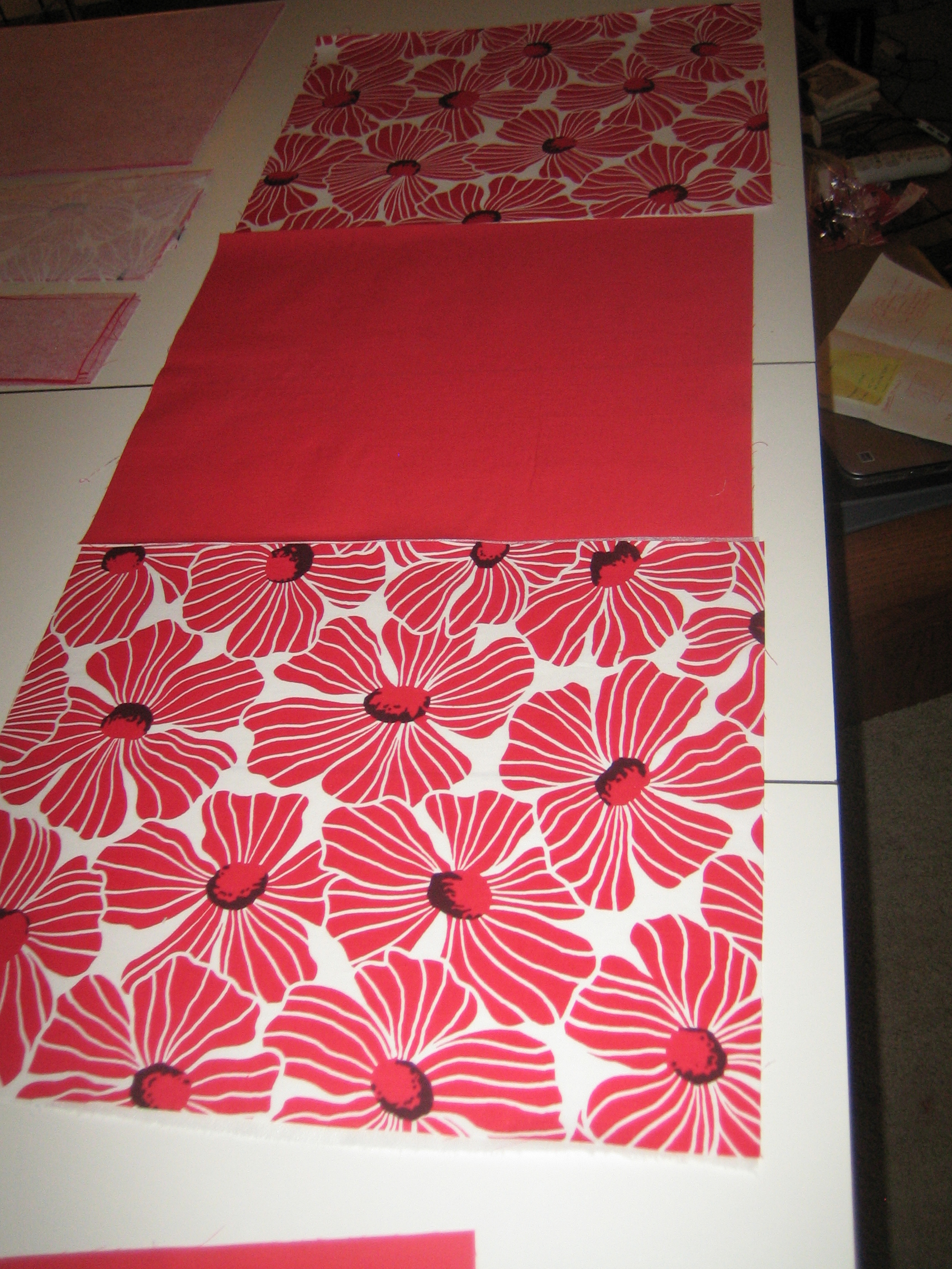 When I was choosing fabric, I tried to remember what kind of dishes she had. I knew they were Corelle, I knew they were white with a pattern that was all or mostly red, and I knew they were square. But after spending quite some time looking at plates and still not finding them, I decided to just look for fabric based on the little information I had and pick something that I liked.
